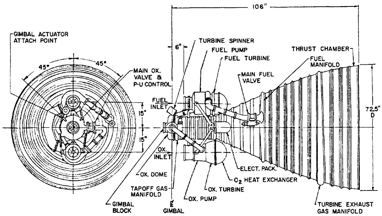 For the same reasons as with the A-1 stage, a four-engine cluster has been chosen, having a total vacuum thrust of 600000 pounds ( 150000 pounds per engine). Because of the substantial vehicle performance gains obtainable through the use of high-energy propellants in upper booster stages, liquid oxygen ( ) and liquid hydrogen have been selected as propellants. For decades this combination has attracted the attention of rocket experimenters and developers. However, only relatively recently has the art of hydrogen engines reached maturity. Several major systems are in active development or in early flight application.