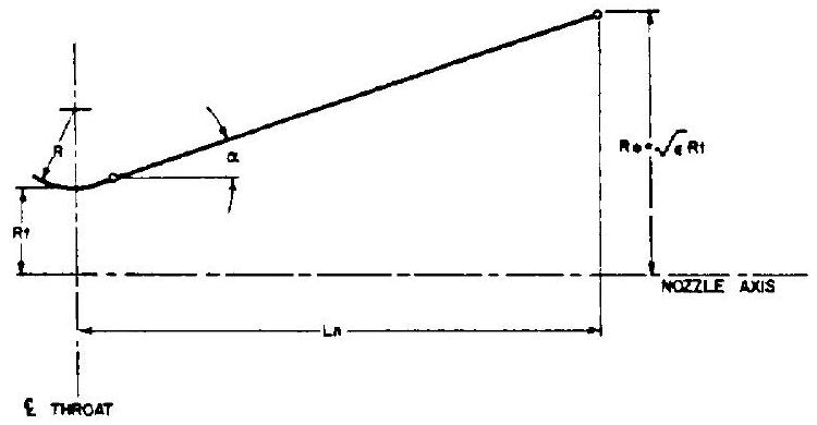 divergent cone half angle a varies from approximately to . The length of the conical nozzle section can be expressed by the equation
