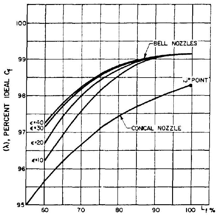 As may be seen, bell nozzle lengths beyond approximately 80 percent do not significantly contribute to performance, especially when considering weight penalties.