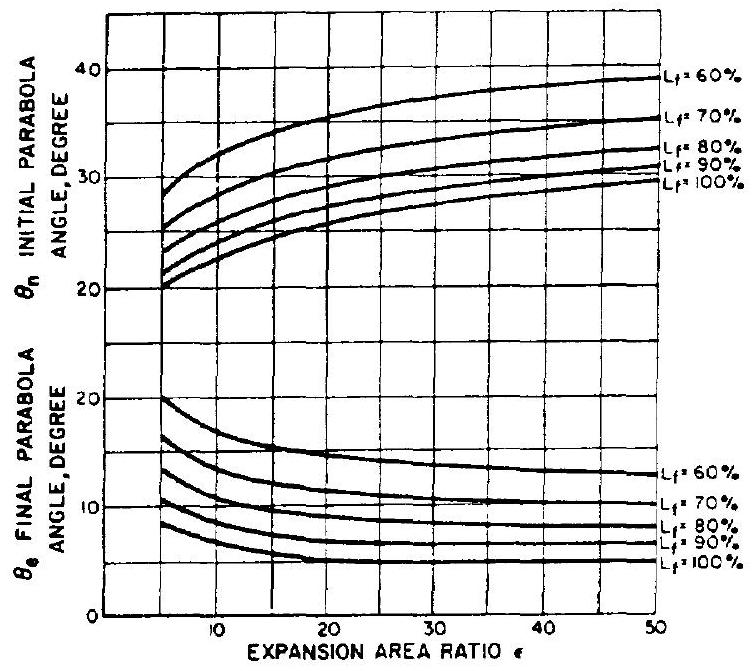 For the design of a specific nozzle, the following data are required: (1) Throat diameter, , inches (2) Axial length of the nozzle from throat to exit plane, , inches (or the desired fractional length based on a conical nozzle) (3) Expansion area ratio (4) Initial wall angle of the parabola, , degrees (5) Nozzle exit wall angle, , degrees