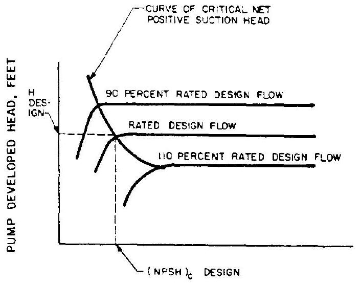 net positive suction head at the pump inlet, feet Figure 6-21.-Typical cavitation characteristics of a pump operated at rated design speed.