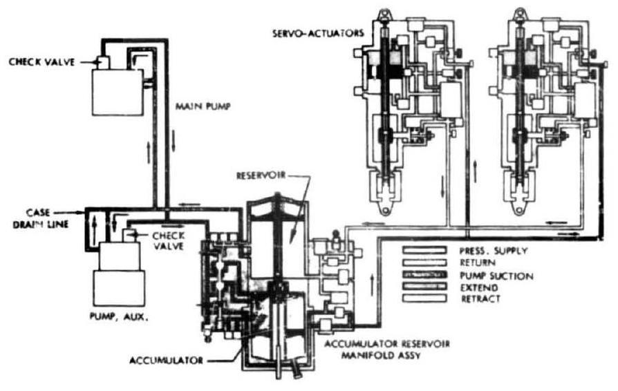 Until other means are available, a hydraulic system is probably required to power the engine actuators. Its basic elements are: