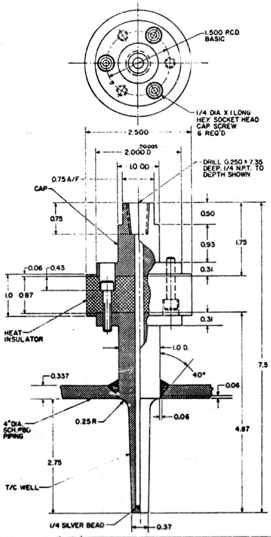 Figure 10-21.-Properly designed thermocouple well (installed in a 4 -inch pipe).