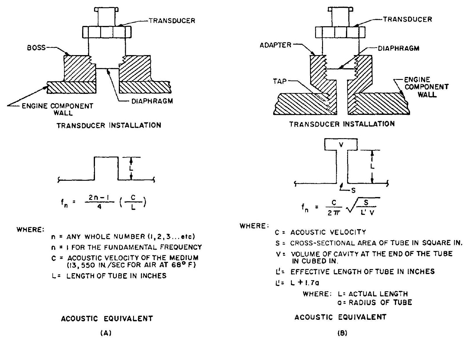 Figure 10-24.-Acoustic equivalents of pressure transducer mounting cavities.