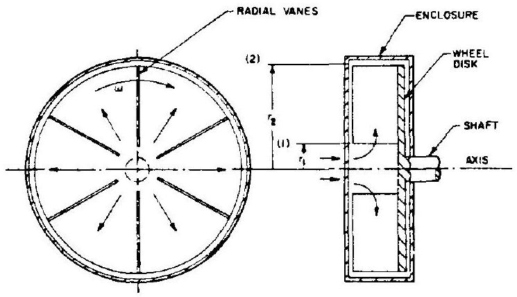 In its simplest form, the impeller of a centrifugal pump can be regarded as a paddle wheel with radial vanes, rotating in an enclosure, with the fluid being admitted axially and ejected at