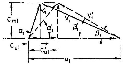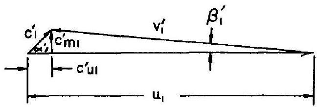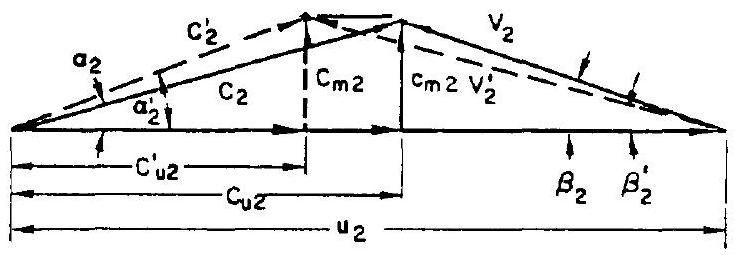 c=flow velocities, absolute (relative to ducts and casing) v=flow velocities, relative to inducer or im- peller u=velocities of points on inducer or impeller