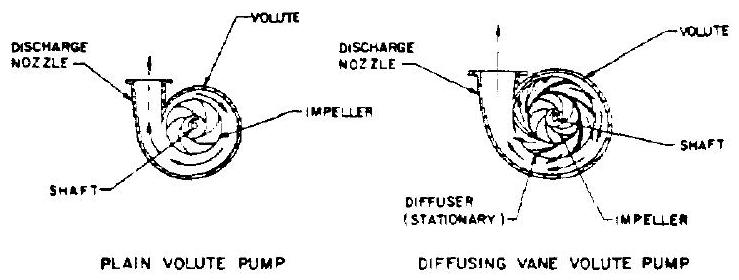 Figure 6-43.-Plain volute and diffusing vane volute centrifugal pump casings.